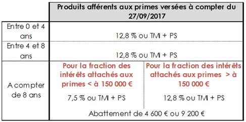 Depuis le 27 septembre 2017, la fiscalité des rachats sur ces contrats est la suivante :